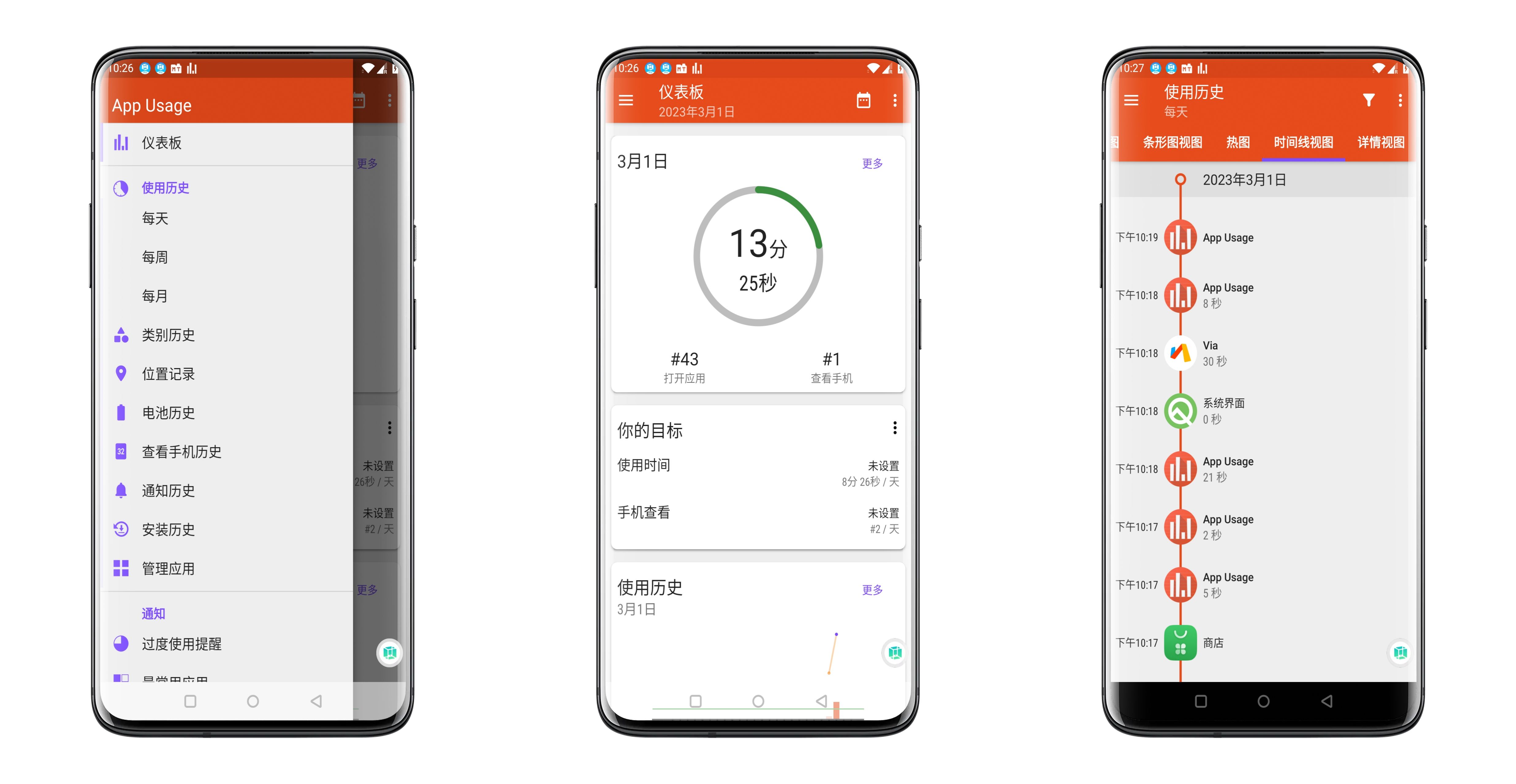 ★显示应用使用历史:手机您使用的应用的使用时间信息
