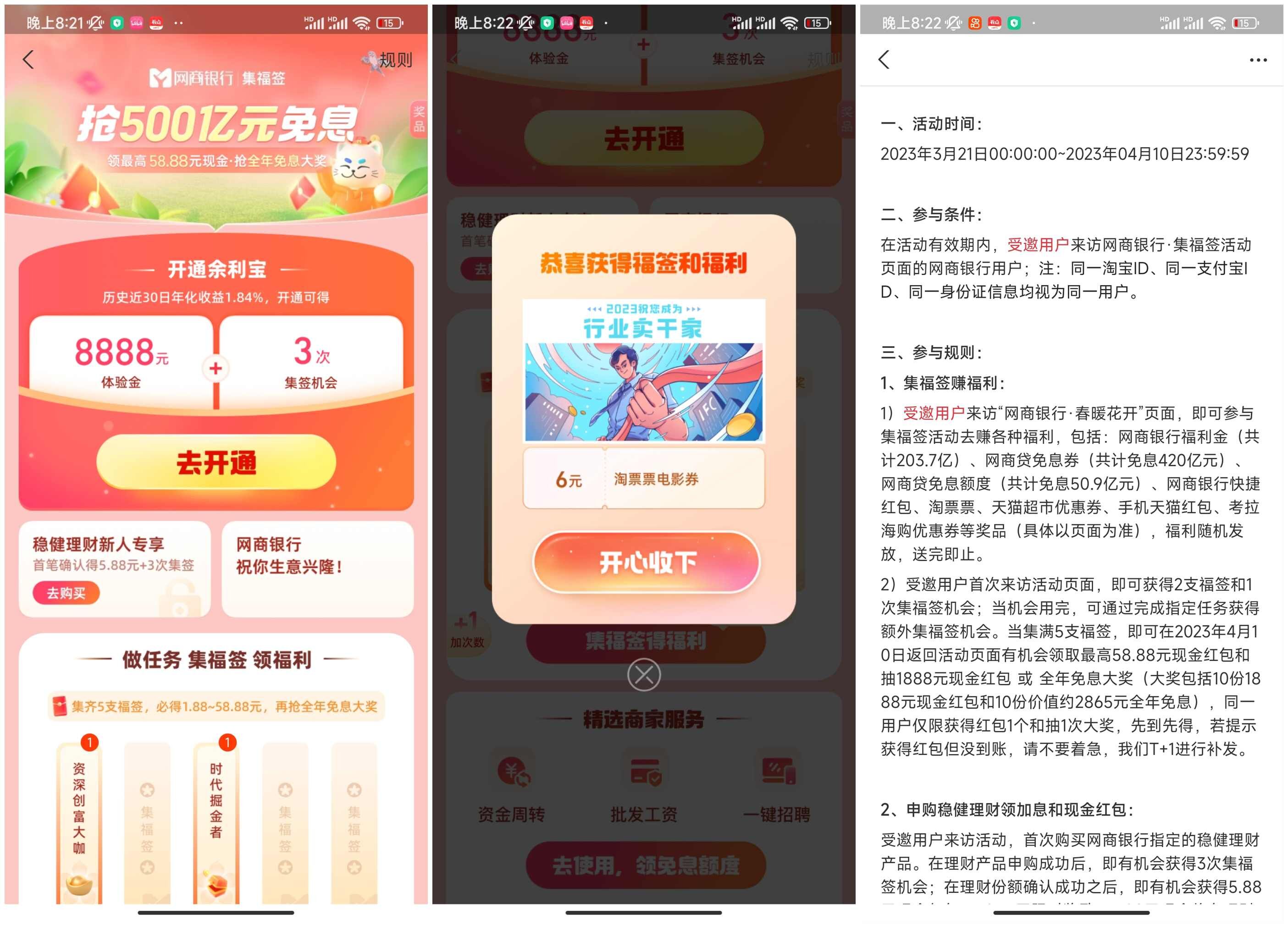 支付宝APP扫码->每天简单浏览得福签->每次抽签得随机福利金或卡券->集齐5支福签必得1.88~58.88元红包