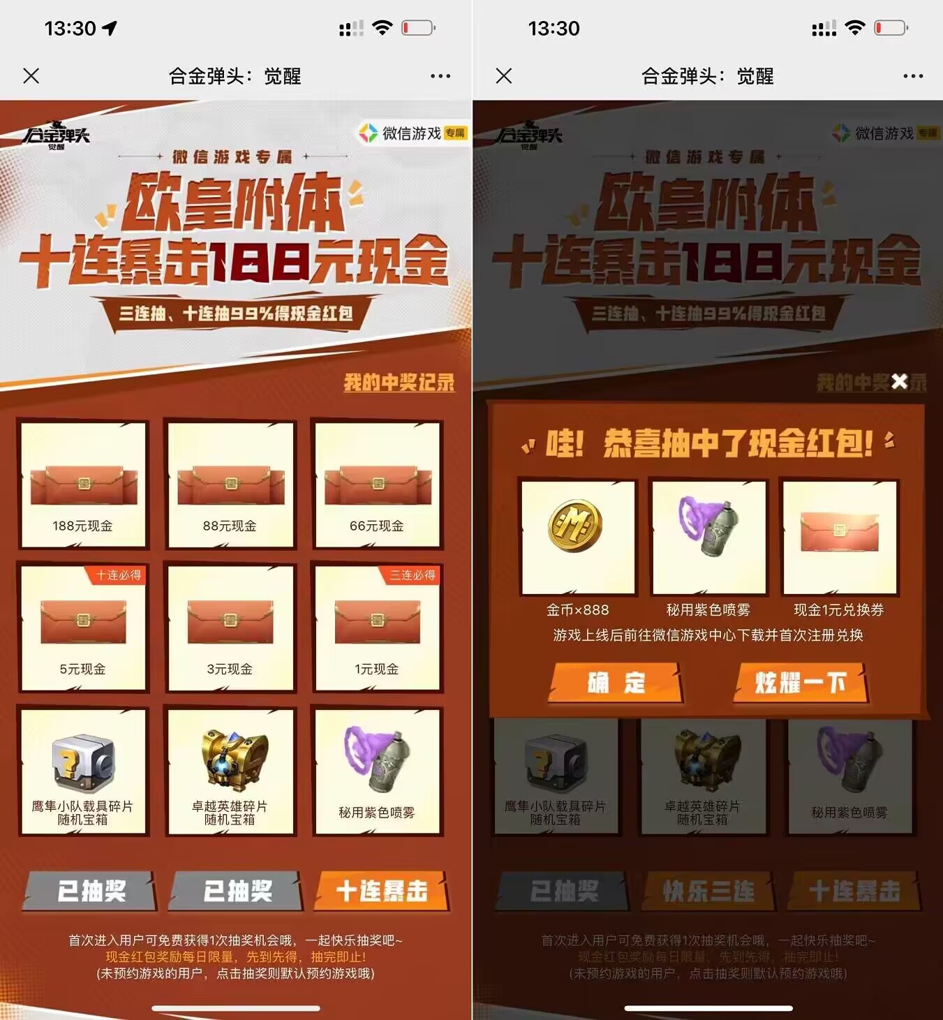 微信打开地址->邀请1/3个好友预约必得1/5元红包卡券->卡券需等游戏上线后才可兑换成红包