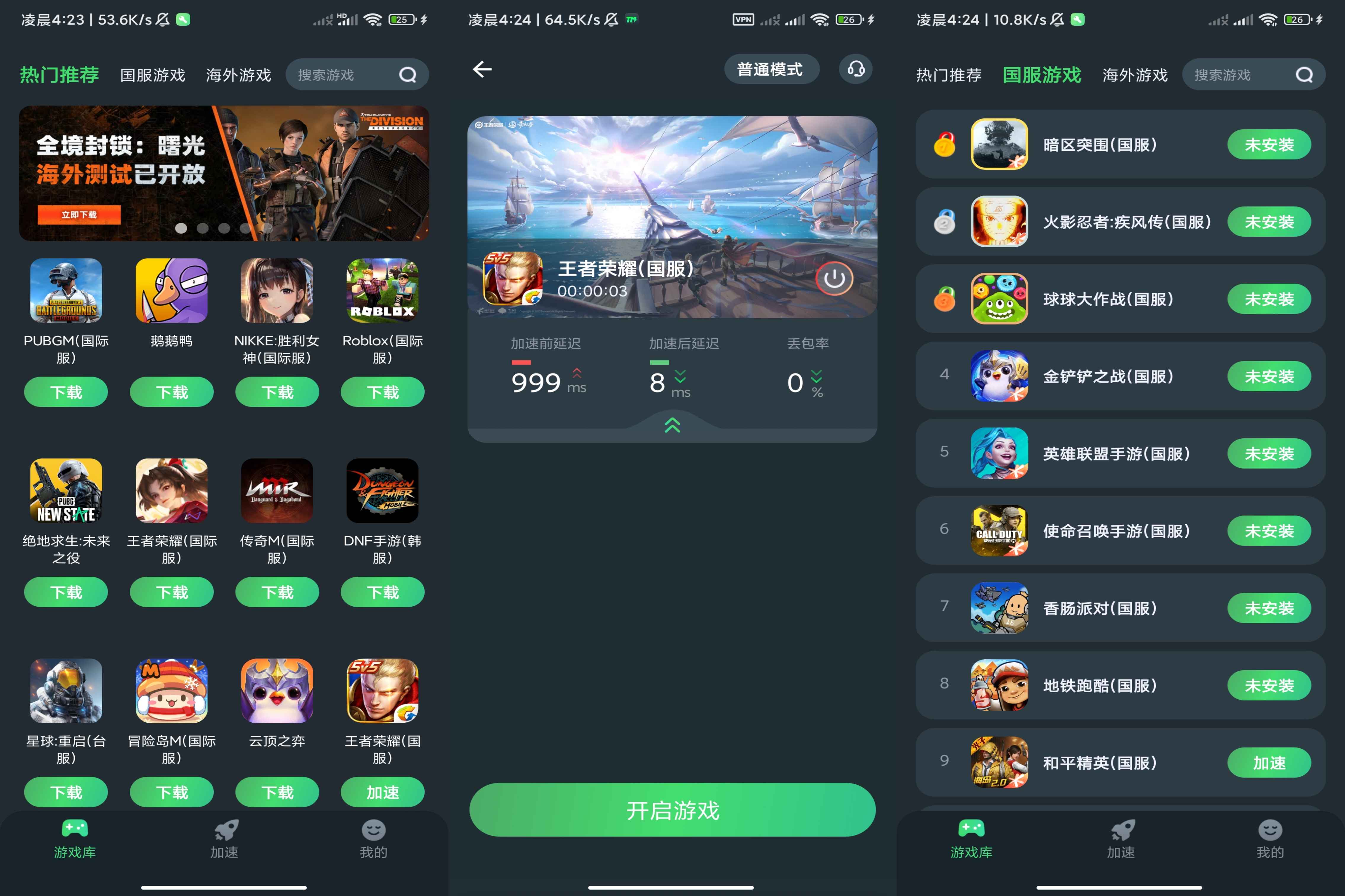 1、实时监控:可以实时看到你本地网络、运营商网络以及游戏服务器网络的波动。