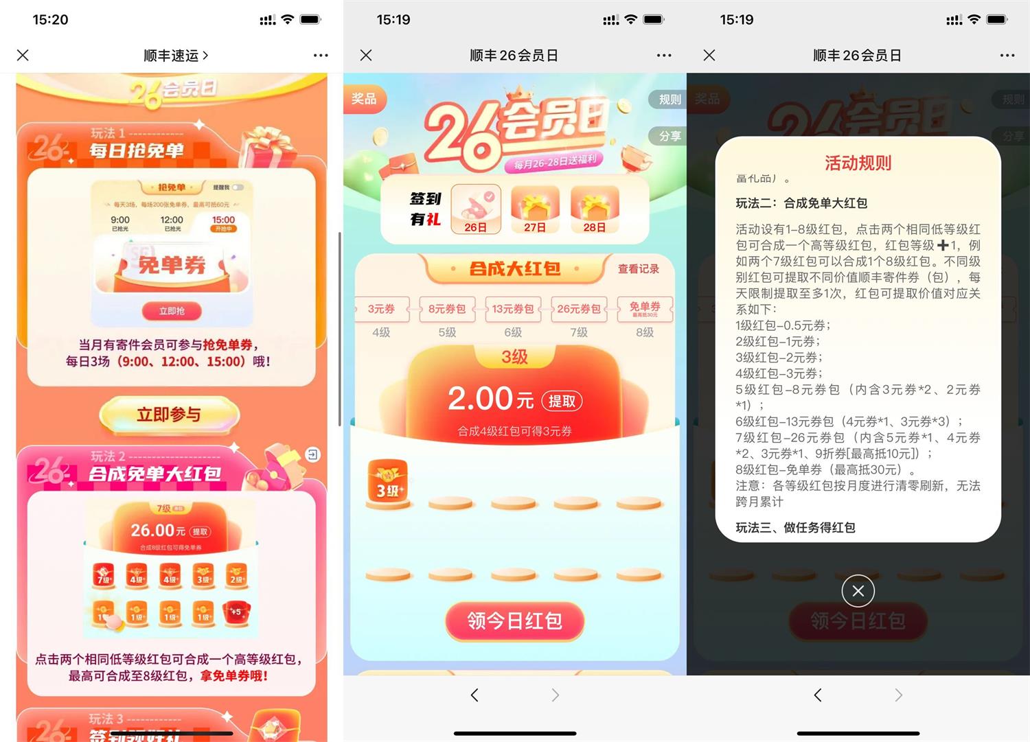 微信打开地址->每天简单浏览得1级红包,合成红包到8级即可领取顺丰30元寄件免单券