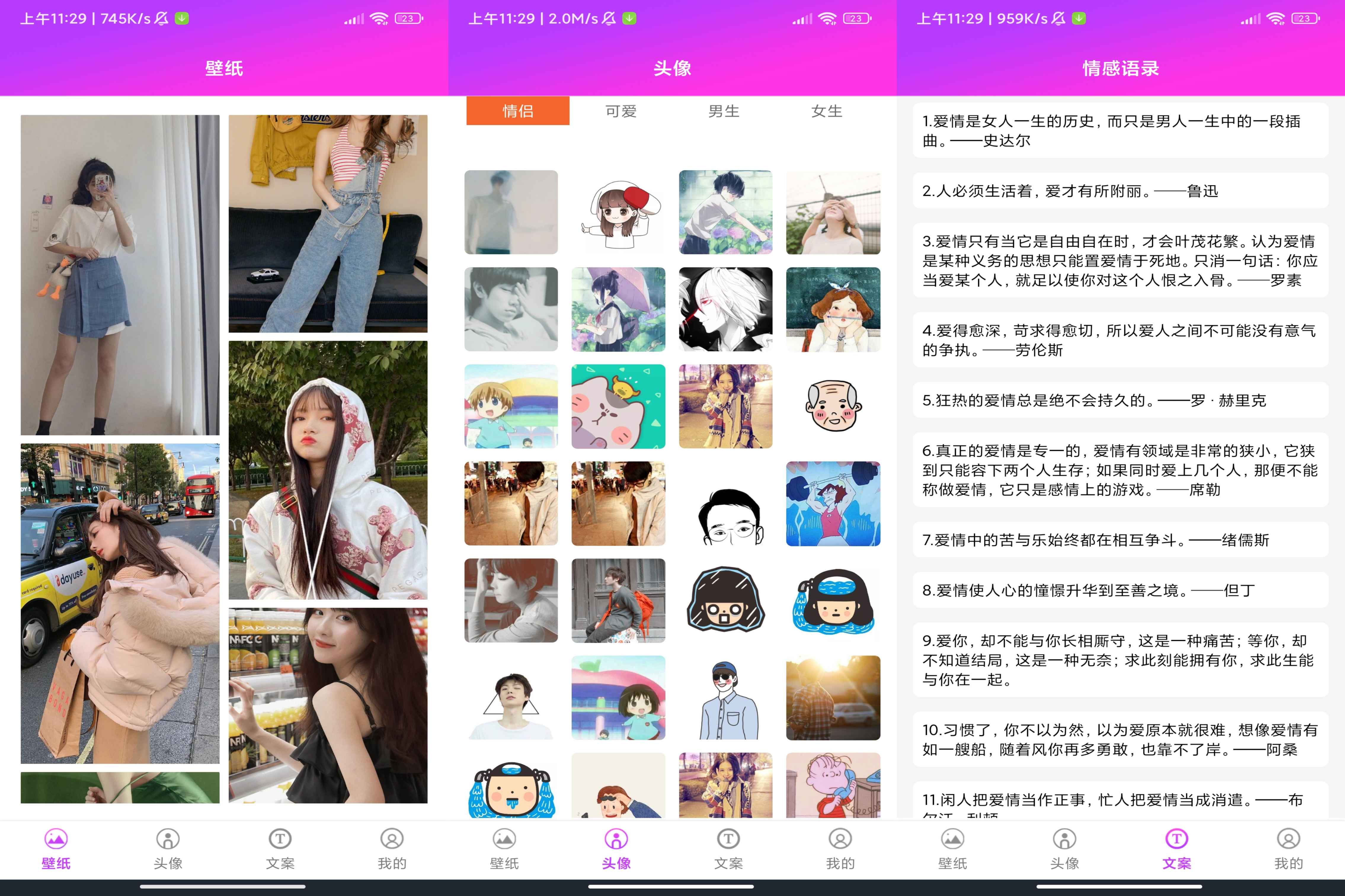3、会不断更新应用的素材库,确保用户能够及时获取到最新的情侣头像、壁纸和其他素材