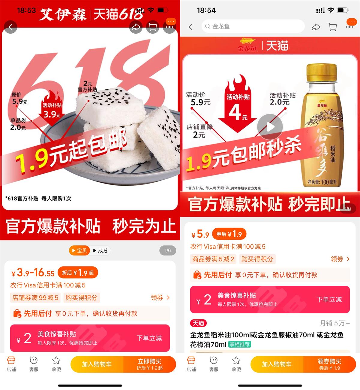 淘宝美食补贴1.9元撸实物包邮