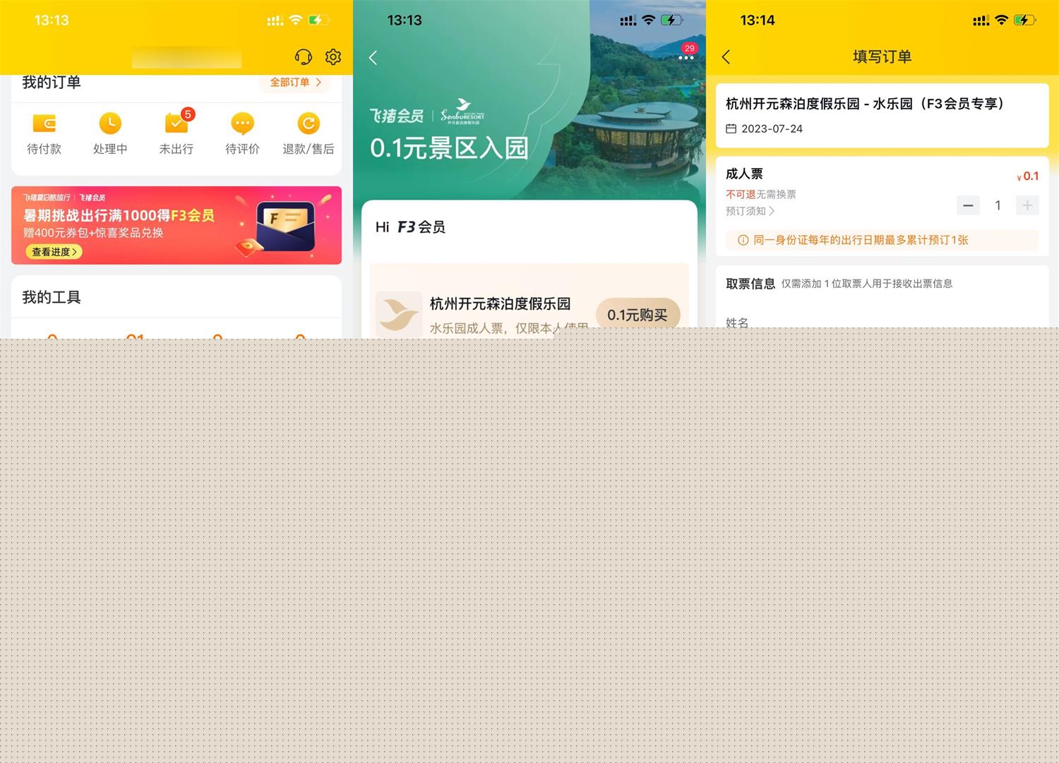 飞猪APP->我的->我的会员权益右侧“更多权益”->旅行权益中有个“0.1元景区入园”,目前有2个景区可以0.1元购买门票