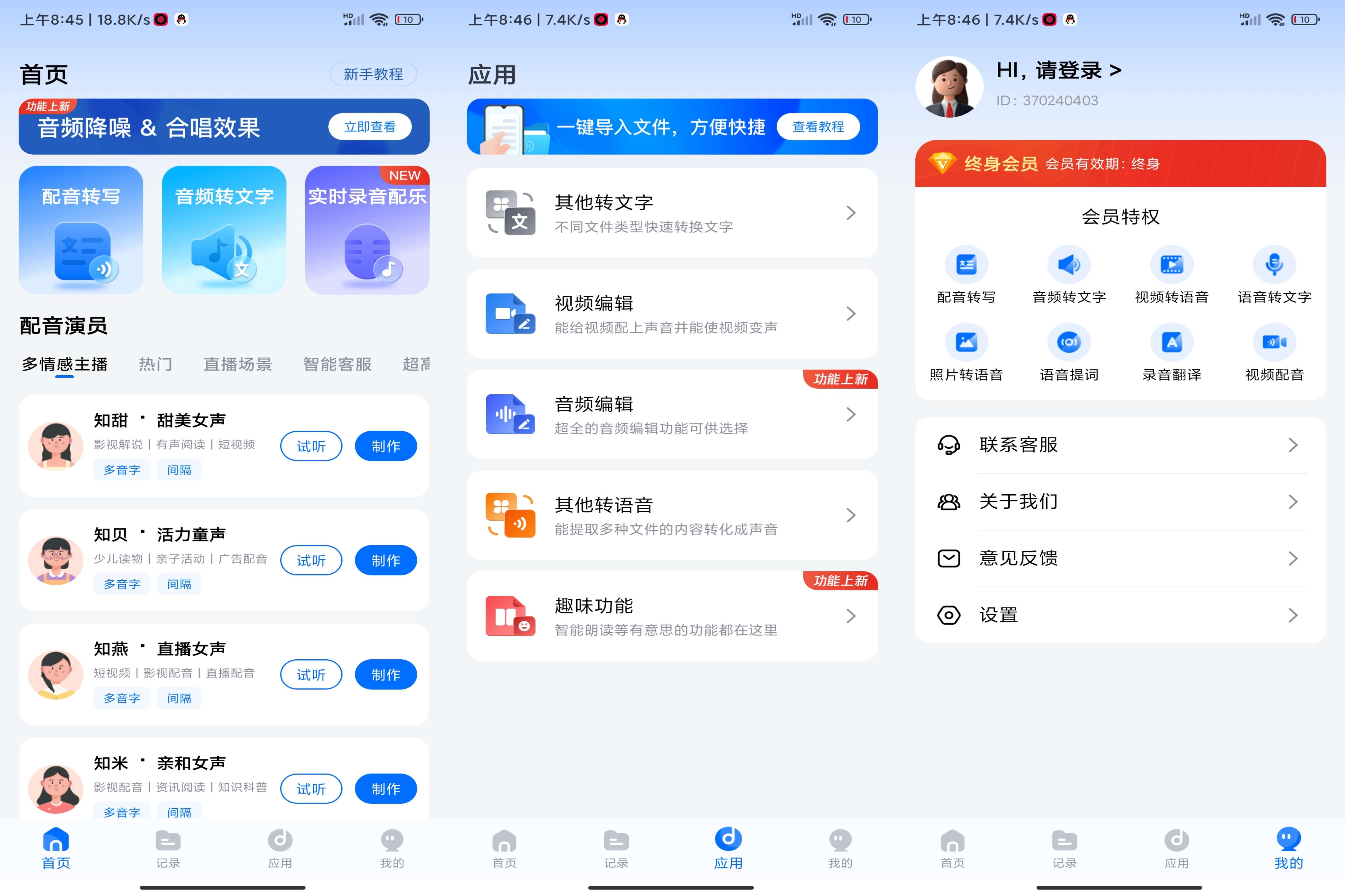 一款专业的手机配音软件。软件中可以选择各种不同风格的配音选项进行适配,体验独特的配音乐趣。专为需要配音的用户群体打造。(解锁VIP)