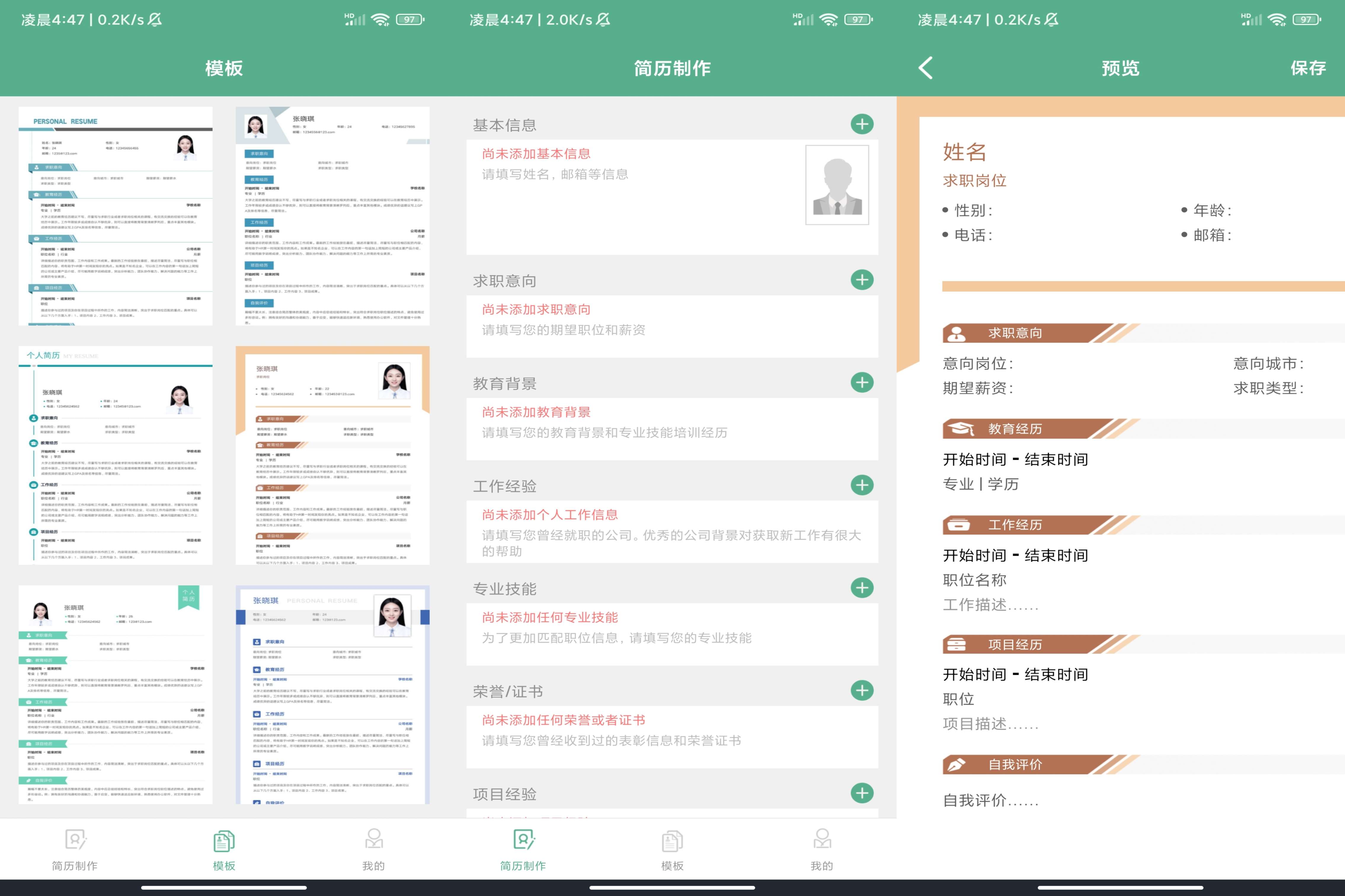 一款非常实用的工具,可以帮助您轻松地创建和管理个人简历。该应用程序具有用户友好的界面,可以帮助您快速创建简历。提供了多种具有吸引力的简历模板。(登陆解锁会员)