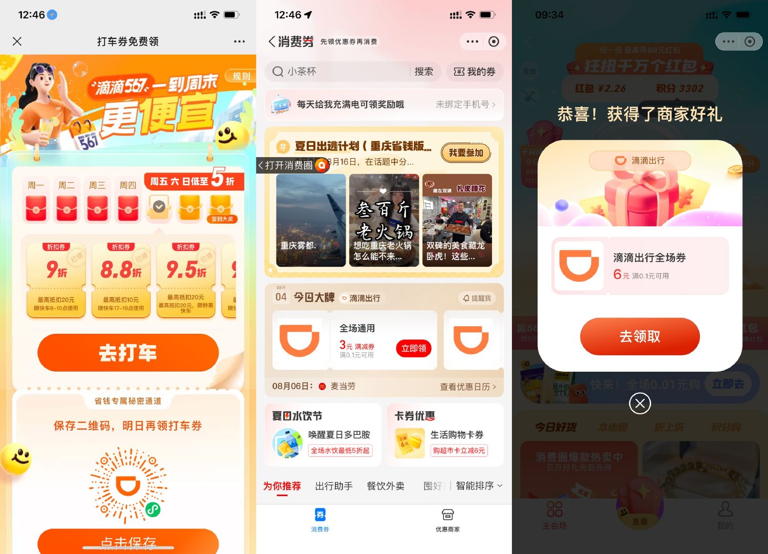 1、支付宝搜索“消费券”进入,今日大牌领3~8元无门槛打车券