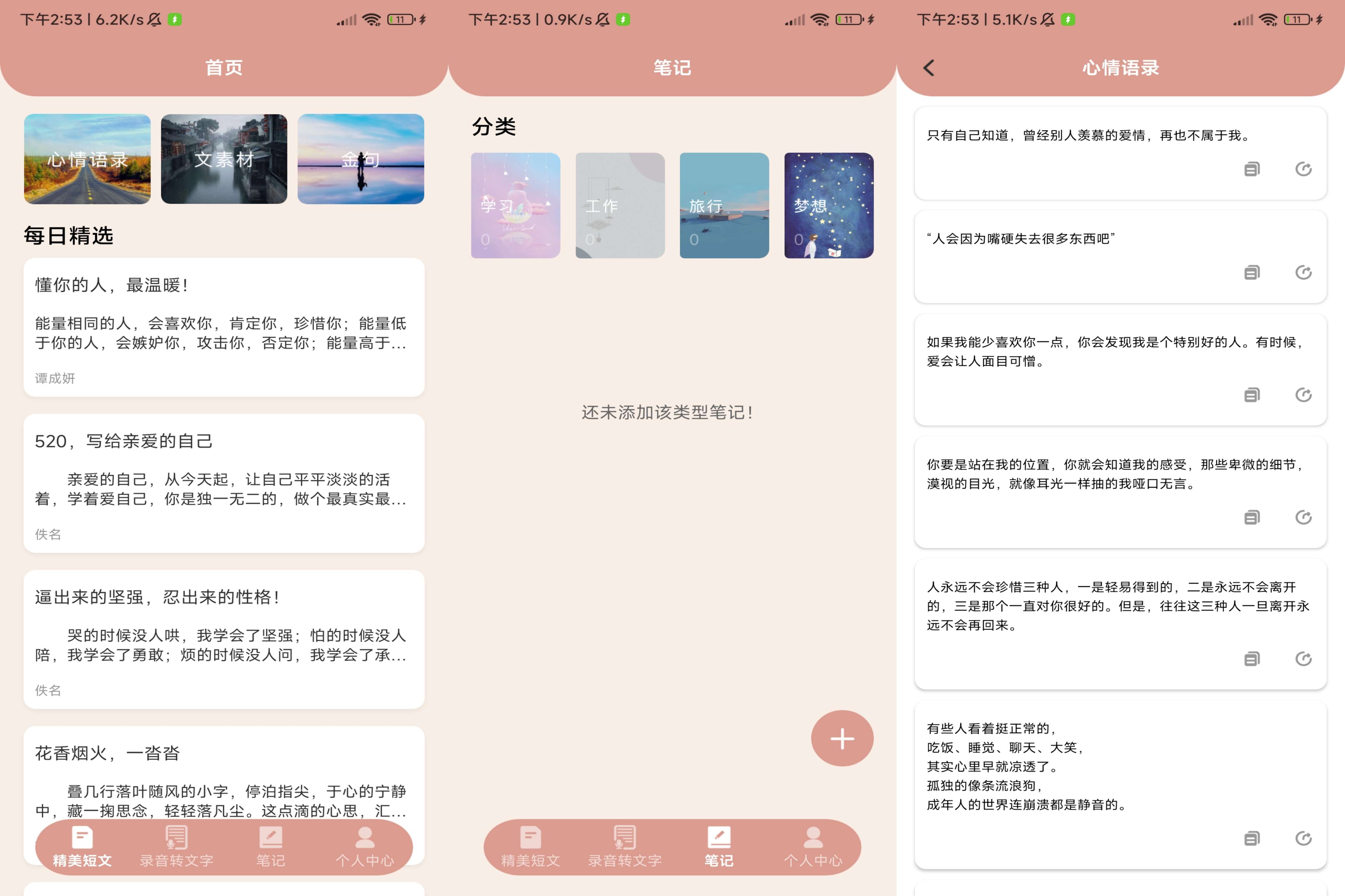 2.文案分类细致,满足大家不同的需求,无论是想找到哪方面的文案都能找到对应分类,找到符合自己心情的句子。