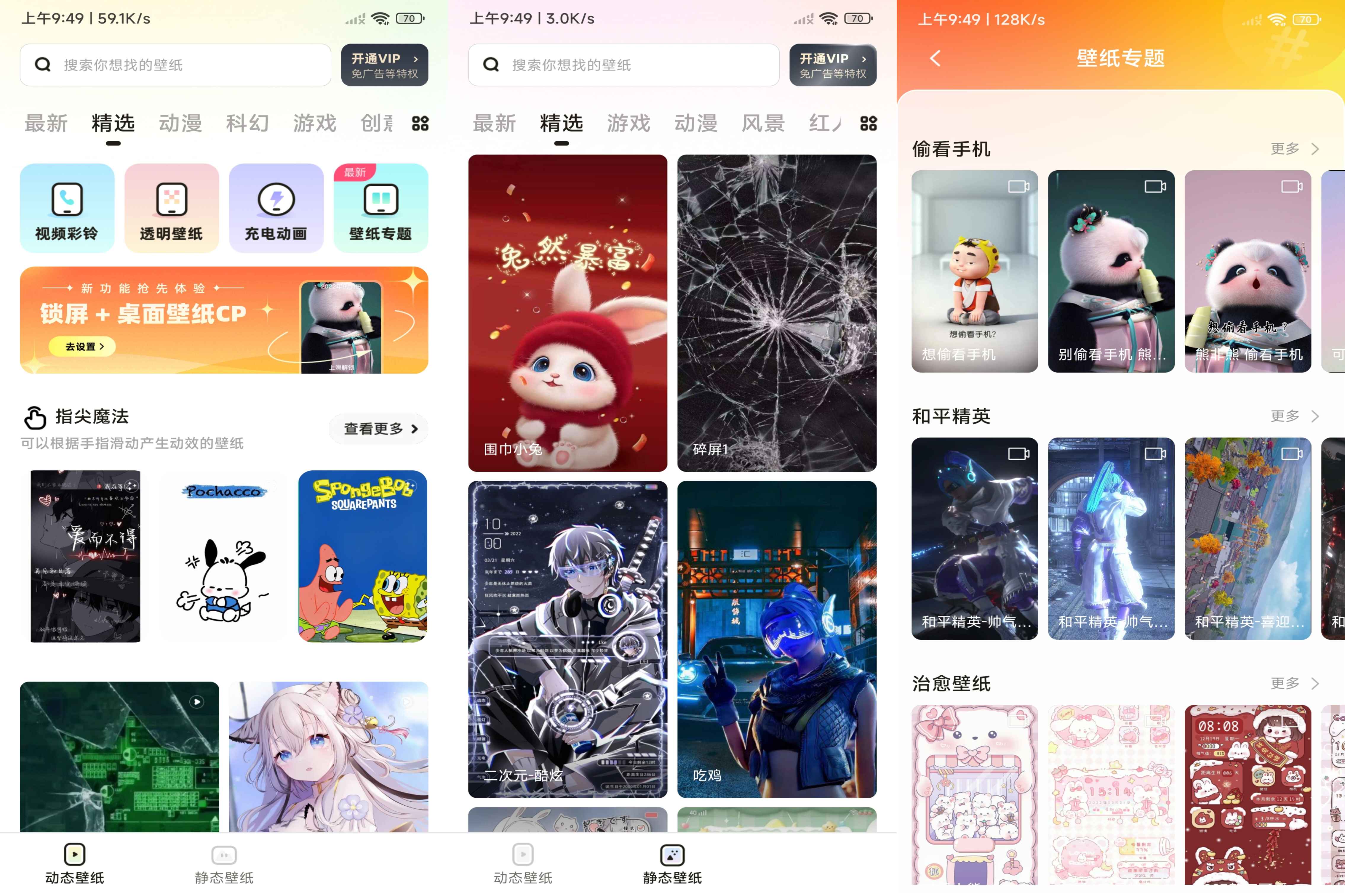 【动态壁纸】大量精选动态壁纸,可一键设置至桌面,让你的手机桌面动起来;