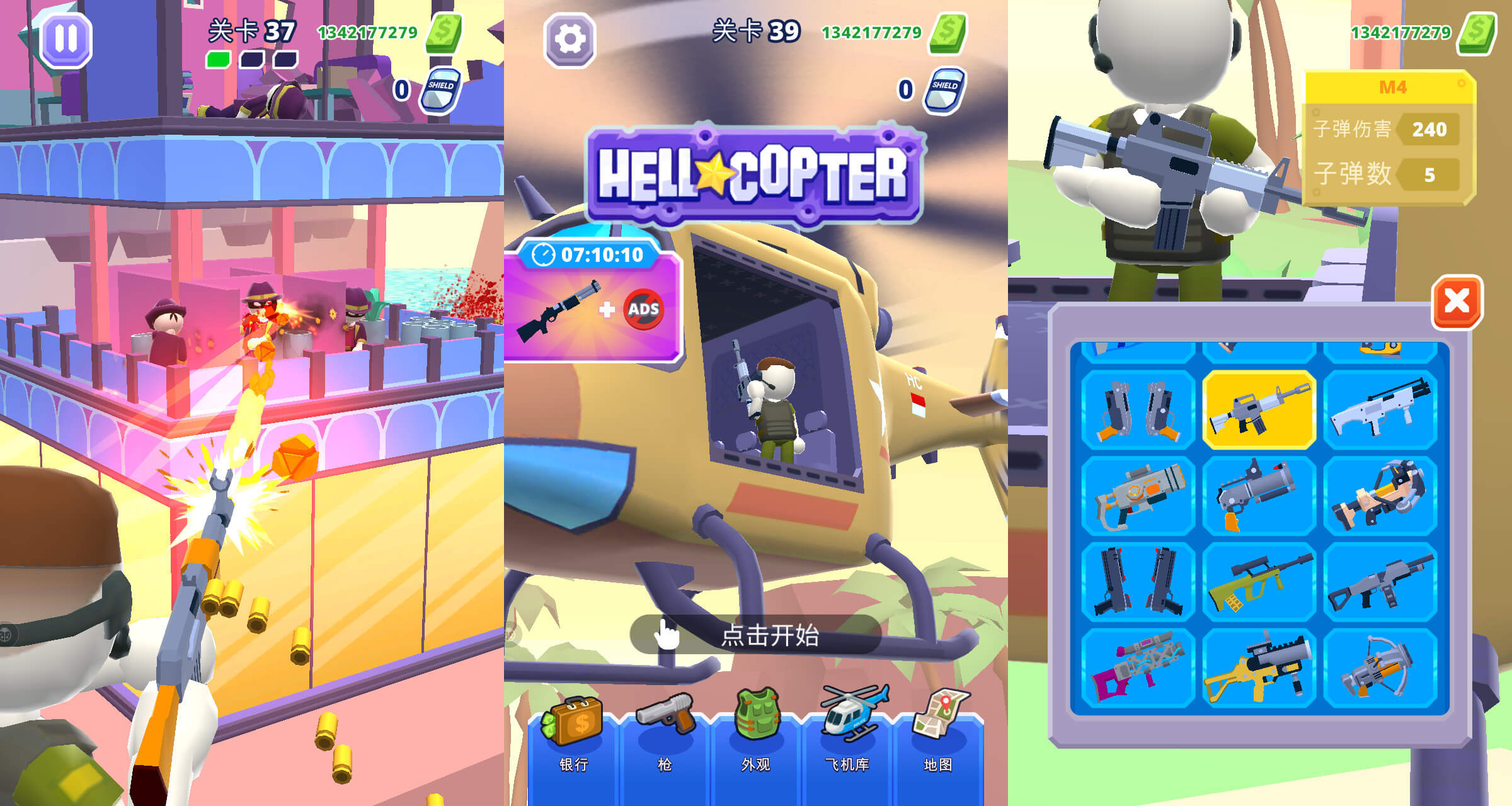 《直升机射手》是一款清新卡通风格的休闲射击闯关游戏,游戏中玩家将乘坐直升机完成各种各样的反恐任务,在直升机上消灭位于高层建筑的恐怖分子,完成各种各样的挑战,游戏的操作简单容易上手,在移动过程中击杀所有的敌人赶快下载体验吧! (无限钞票)