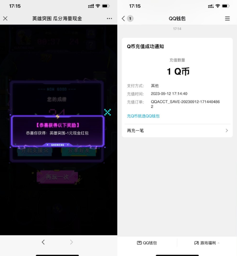 高能英雄玩游戏抽1Q币和红包