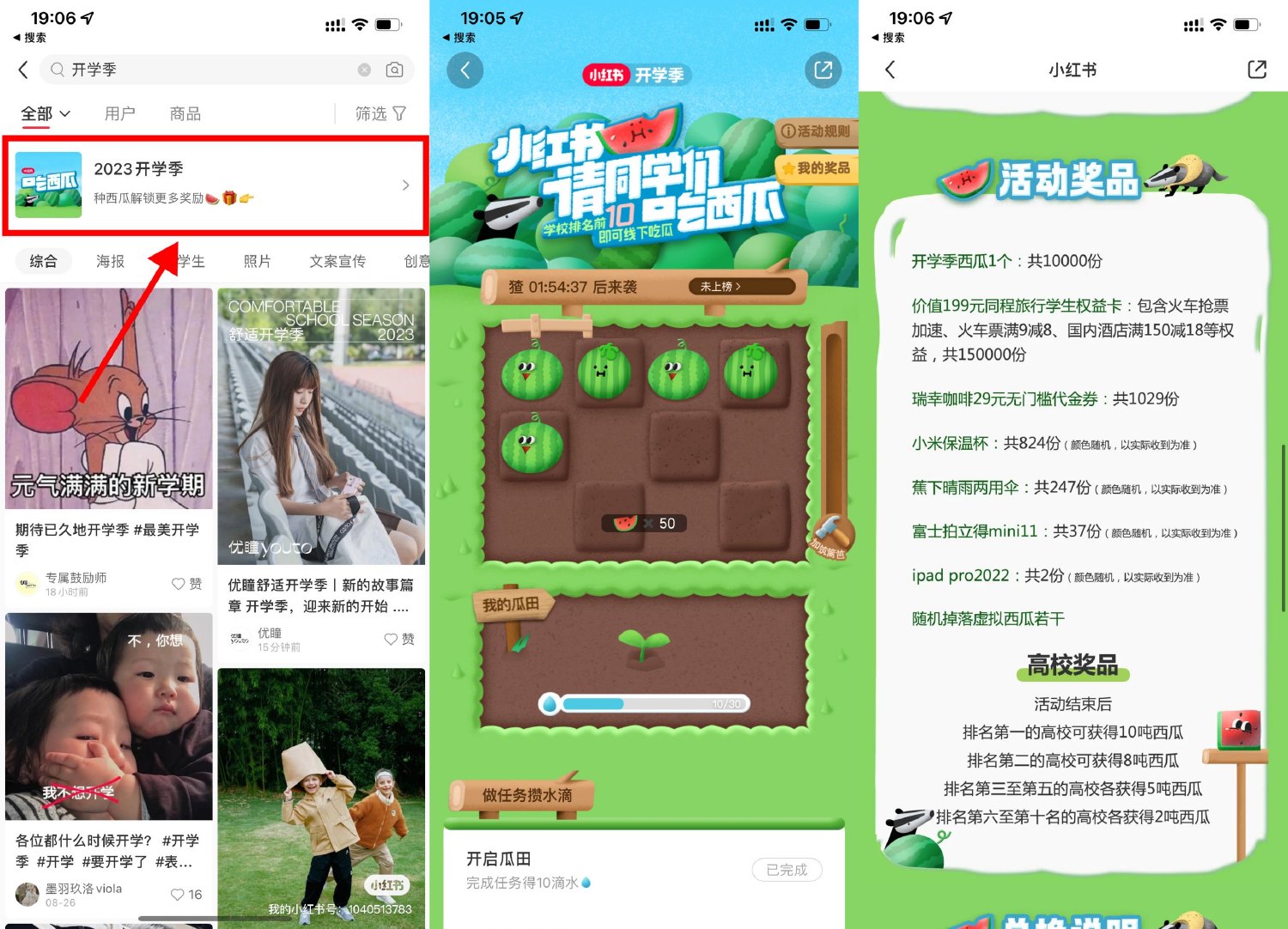 小红书开学季种瓜抽免费实物