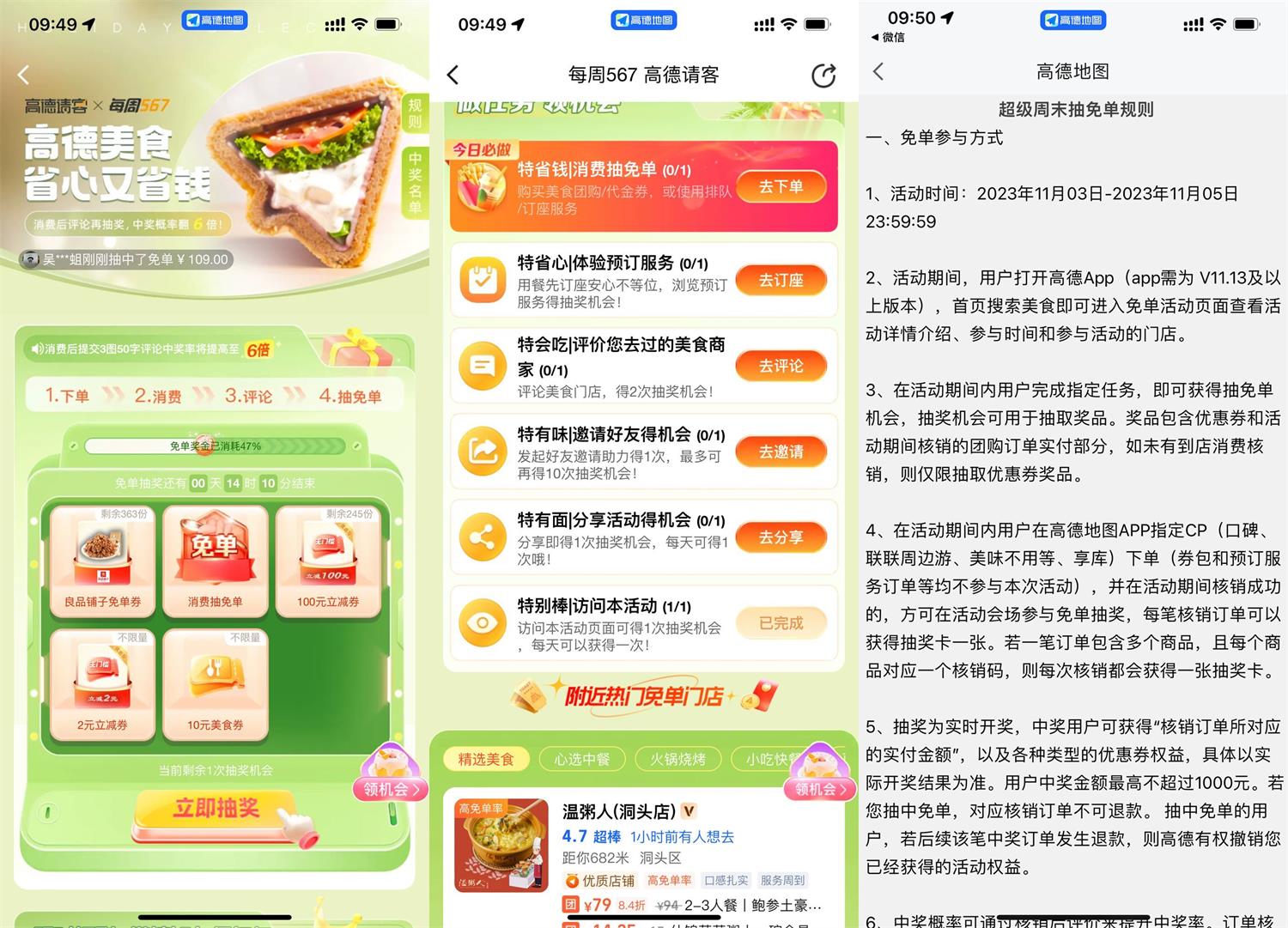 高德地图APP搜索“免单”->下拉简单浏览得次数->抽中免单或打车券才有用